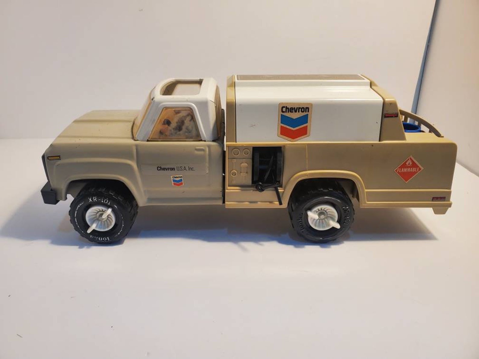 The sturdy backhoe is made of die-cast metal with small plastic parts Lot of 3 Vintage 70s Tonka Trucks - Metal Children's Toy Vehicles - Dump Truck, Cement Mixer, Moving Truck (190) $ 58.00 Vintage 1960s Tonka US Air Force USAF Jeep sold for $335.00; 8